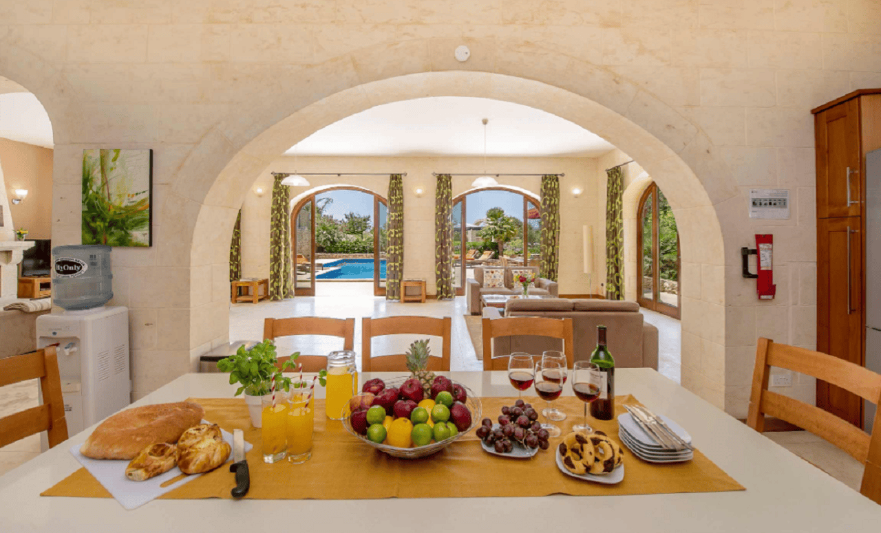 The villa is situated in San Lawrenz, the most rural part of Gozo on the western side of the island, and enjoys wide open spaces all around and a great deal of privacy. Yet it is only only 3.5 km from the capital, Victoria.
